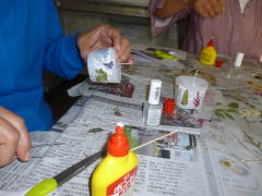 ボンドで花をつけながら、「使わずに飾って置こう〜」、「きれい〜!!」の声。