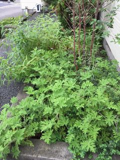 モサモサと元気に育っている「ゼラニウム」「レモンバーベナ」