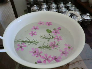 足浴のたらいの中に、庭に咲いたマロウの花を浮かべて
