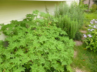 モサモサと元気に育っている「ゼラニウム」「レモンバーベナ」